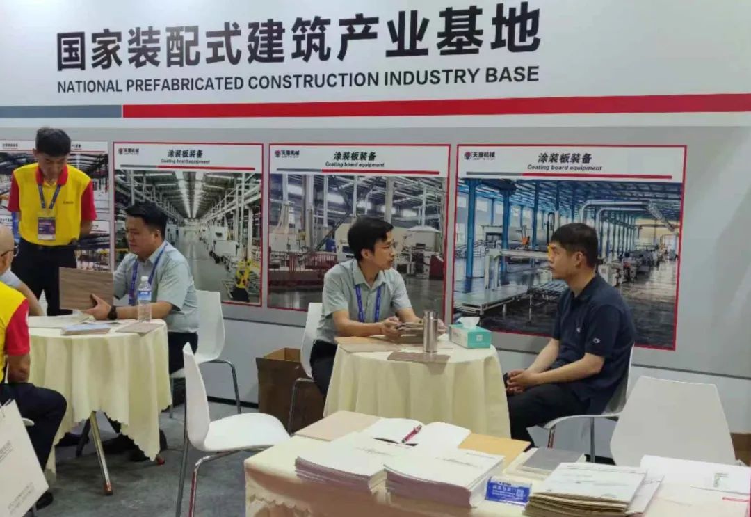 展位現(xiàn)場(chǎng),天意機(jī)械重點(diǎn)展示的裝配式內(nèi)外裝飾一體化板智能裝備是生產(chǎn)醫(yī)療潔凈板的主要設(shè)備,吸引了眾多業(yè)內(nèi)專家、參展商及眾多觀眾的關(guān)注。